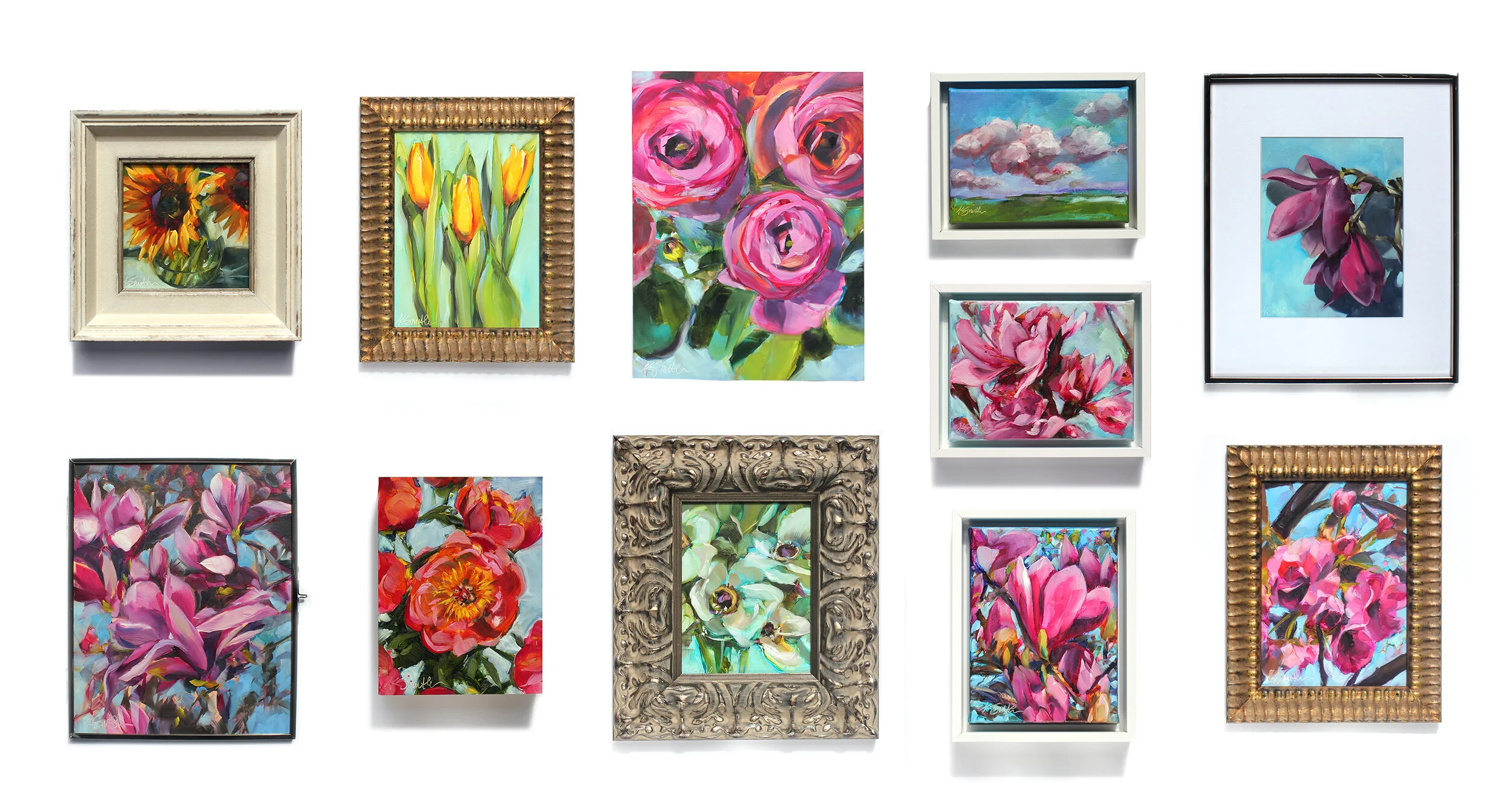 From small 6"x6" gems to bold 40"x40" statement pieces, each of my oil paintings is created with luscious, buttery paint and a loose, intuitive style. Inspired by florals, birds, and the beauty of everyday life, these original works are available here in my online shop, in galleries, and at select juried art shows.