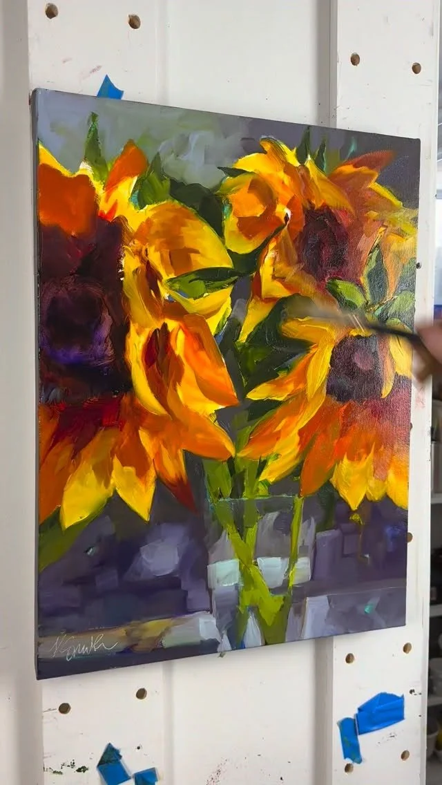 From small 6"x6" gems to bold 40"x40" statement pieces, each of my oil paintings is created with luscious, buttery paint and a loose, intuitive style. Inspired by florals, birds, and the beauty of everyday life, these original works are available here in my online shop, in galleries, and at select juried art shows.